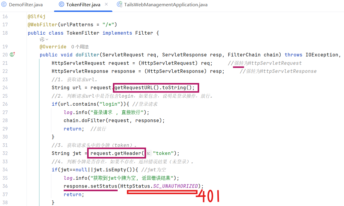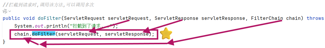 (3)代码实现(doFilter方法没有返回值 直接return代表结束)