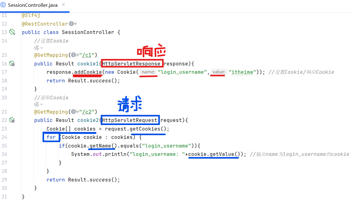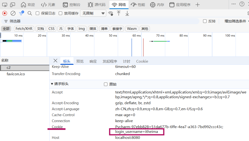 B. 访问c2接口 http://localhost:8080/c2,此时浏览器会自动的将Cookie携带到服务端,是通过**请求头Cookie**,携带的。