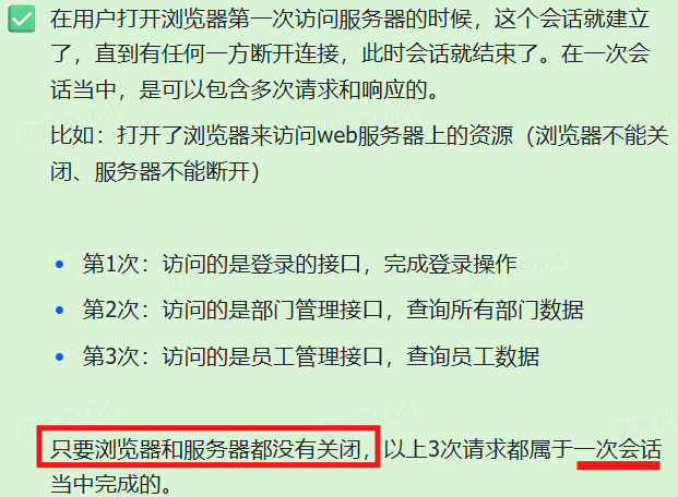 在web开发当中,会话指的就是浏览器与服务器 之间的一次连接,我们就称为一次会话。