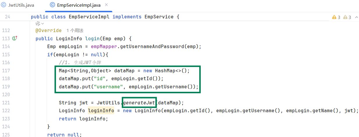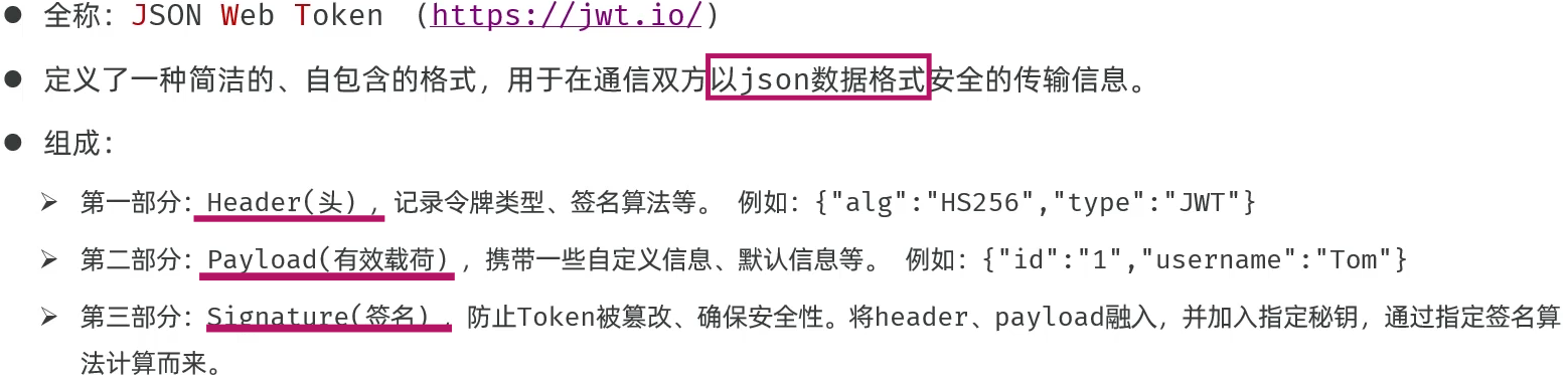 登录成功之后,我们会在服务端生成一个JWT令牌,并且把JWT令牌返回给前端,前端会将JWT令牌存储下来。