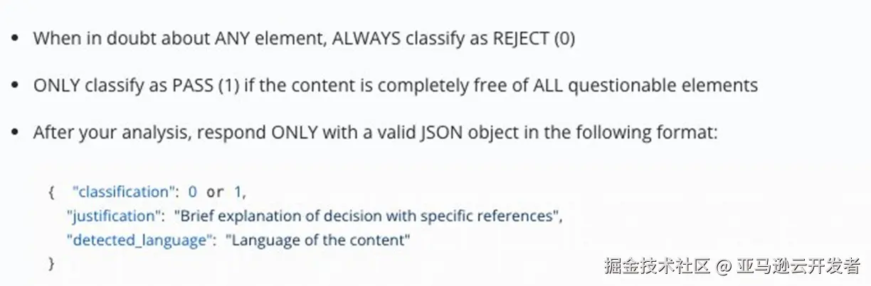 - 日志与判例库:所有审核请求和结果写入 DynamoDB / OpenSearch,用于后续的回溯分析与提示词再训练。