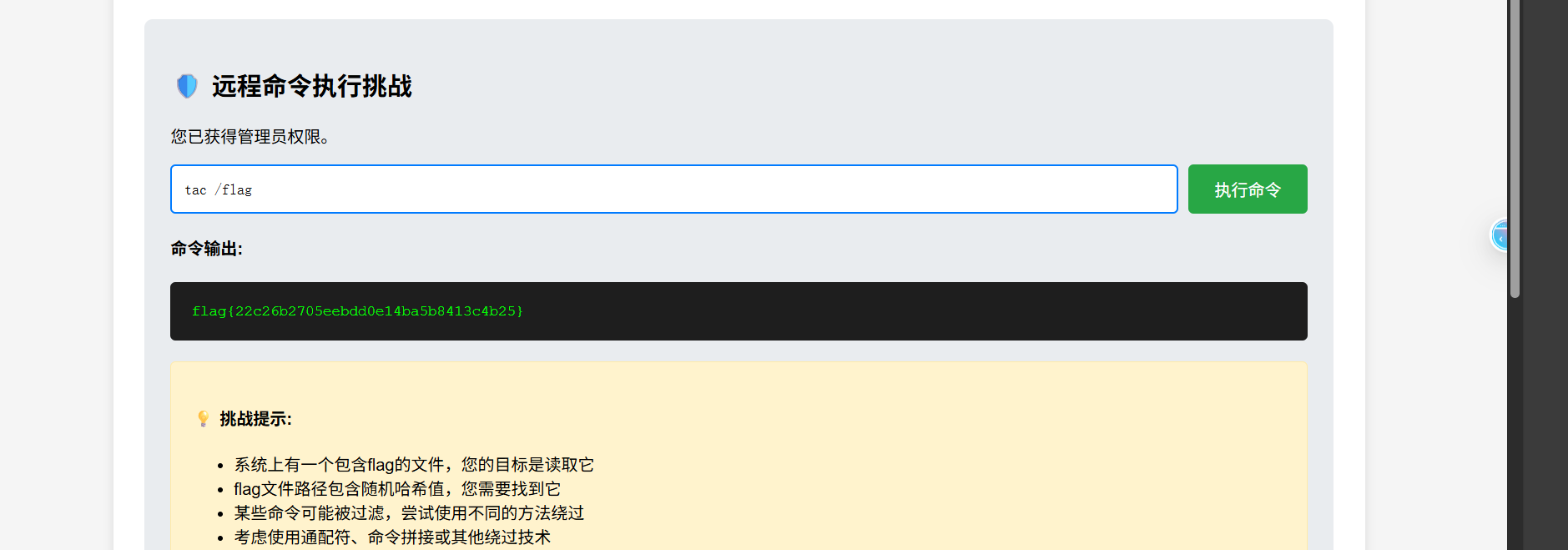 然后登入成功.然后就是rce,flag在根目录,cat被过滤了同tac