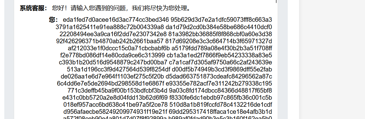查看后得到一堆字符串,用来跟客服聊条爆破,但是都是回显302