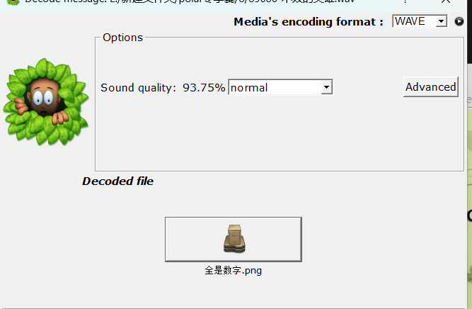 按照这个表一一的对应,得到dgopsuv,然后是一段音频,直接听没得到啥信息,然后就上工具,使用slienteye得到一张图片