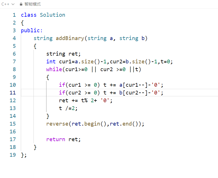a[cur1]-'0'/b[cur2]-'0'将字符形式的二进制位('0'/'1')转为整数(0/1),避免 ASCII 码直接相加的错误; - 累加当前位:将