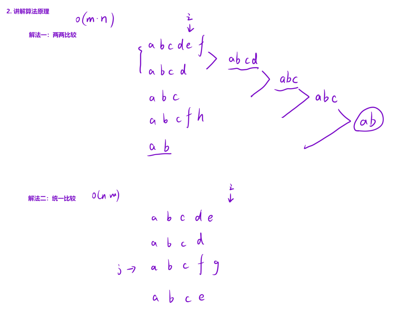 m是基准字符串的长度,n是数组中字符串的数量。最坏情况下需要遍历基准字符串的所有字符,且每个字符都要校验所有其他字符串。 - 空间复杂度 :O (1),仅使用了常数个临时变量(