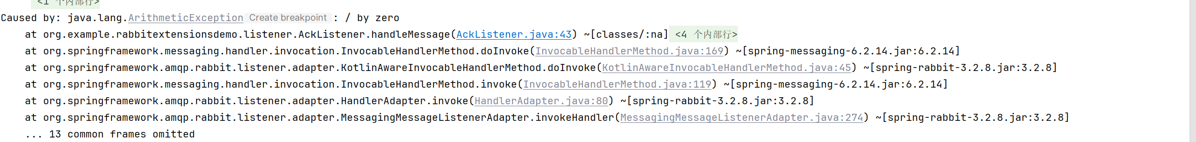 手动制造算数异常,可以看到消息不断重新入队尝试重新发送给消费者: