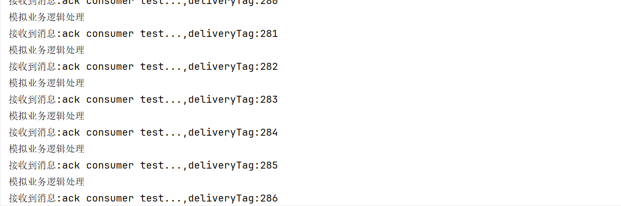 channel.basicAck(deliveryTag, false):第一个参数表示当前肯定确认从哪个deliveryTag开始,第二个参数表示是否批量确认,由于我们这里只发送一条消息所以是false。
