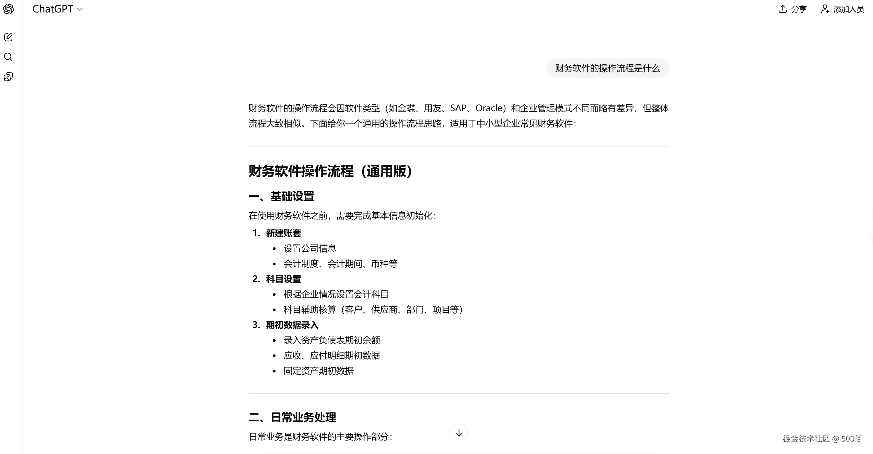 操作财务软件的流程包括登录系统、设置账目、输入交易数据、进行账目调整,以及生成和查看财务报表等。虽然初次接触可能会感到有一些复杂,但是只要掌握了基本操作,就会很容易上手最基本的,可以提问ChatGPT财务软件的操作流程是什么。可以把财务软件的官方教程或者用户手册交给ChatGPT。