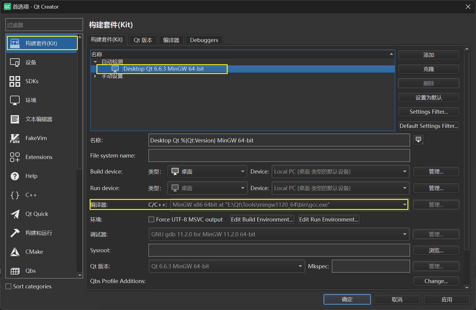 第一个选项"C",可以通过打开Qt,在选项的构建套件找到目录