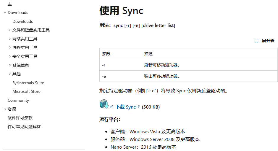 https://learn.microsoft.com/zh-cn/sysinternals/downloads/sync