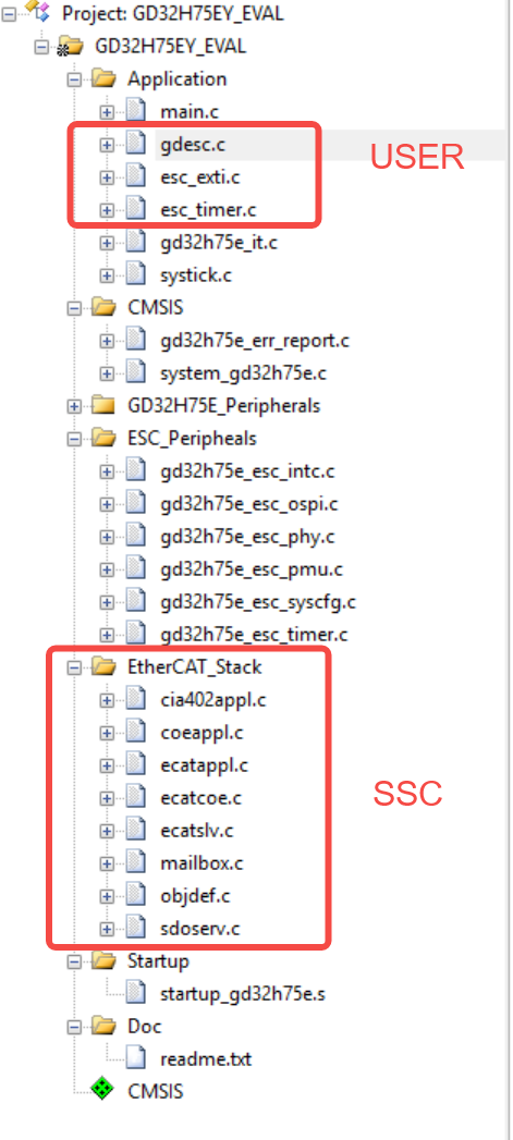 其中SSC为官方生产的代码,USER为用户适配SSC所做的接口。