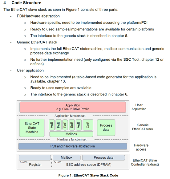 关于Ecat的代码,SSC TOOL的官方文件写的很好,详细讲解了Ecat的原理,代码架构,处理流程,CIA402的格式等,非常值得从头到尾看一遍学习。文件名是AN_ET9300_V1i10.pdf。(因为不确定是否需要版权才能使用,所以文档就不附上了)。