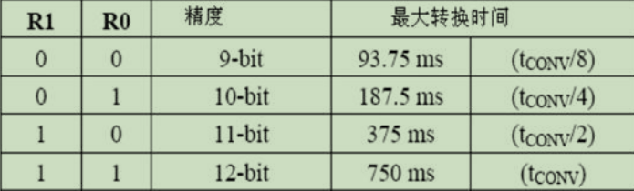 可设置为 9位,10位,11位,12位,对应分辨率温度为0.5°C,0.25°C,0.125°C,0.0625°C