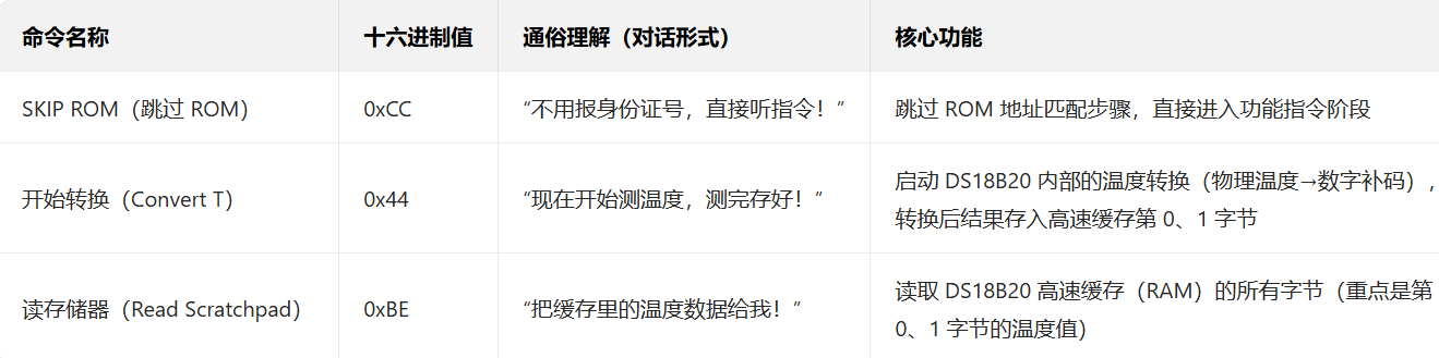 命令的本质 = 主机(51 单片机)和 DS18B20 的 "约定暗号"