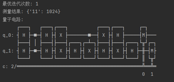 其次,创建并初始化 n 个量子比特,并逐个应用 Hadamard 变换(H门)以得到所有可能的均匀叠加态;
