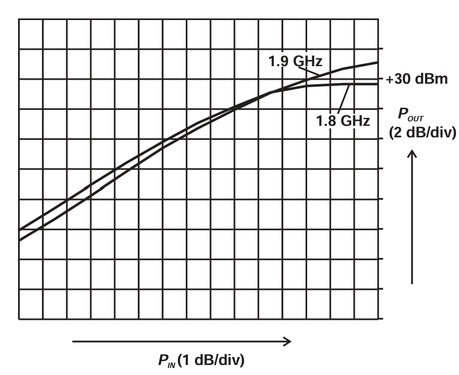 图 2.6 显示了器件在最佳匹配条件下的工作情况,此时它将输出 RF 功率