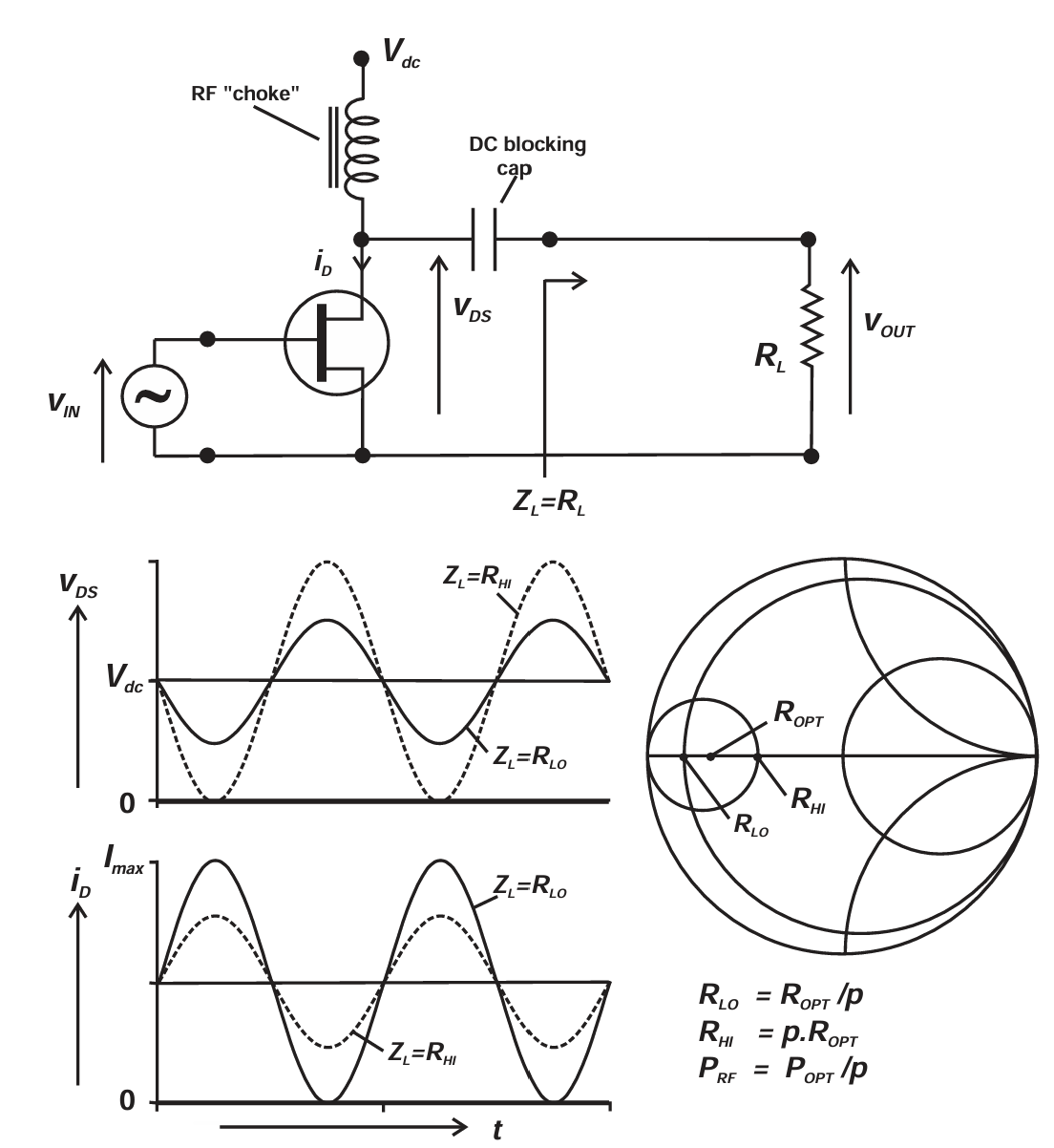 在某些方面,功率放大器的设计与低噪声放大器的设计具有相似性:为了获得器件最佳的噪声性能,其输入端必须呈现一个反射系数,而这个反射系数通常与输入阻抗的共轭匹配有显著偏离。在线性功率放大器的情况下,为了从器件中提取最大功率,必须在输出端对器件呈现一个功率匹配阻抗。