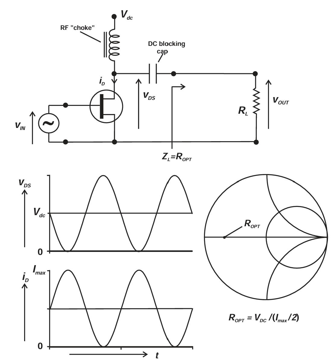 图2.6 Class A linear power amplifier, with optimum loadline match.