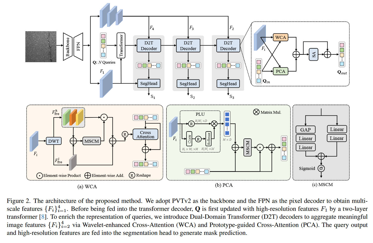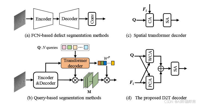- Figure 2(整体架构) 展示了如何将 D2T 解码器(WCA+PCA)集成到一个多层级的 Transformer 架构中,以实现对缺陷的渐进式精炼。