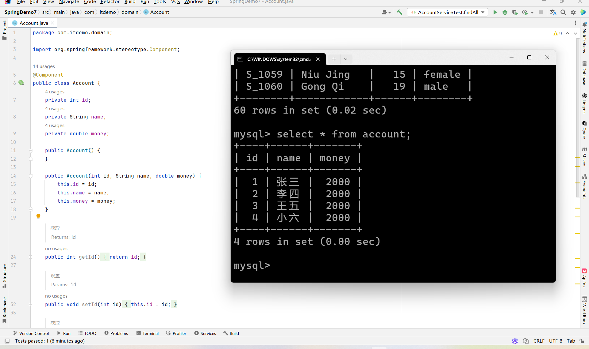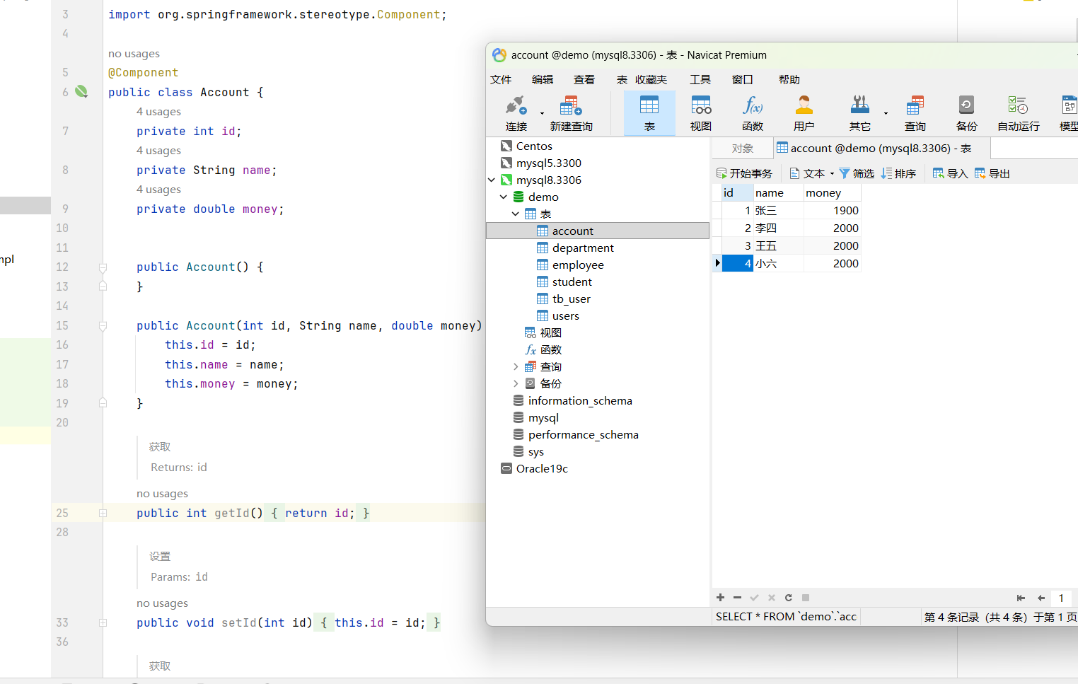 在添加事务管理之前 ,运行后会出现 李四 的钱少了100,但是张三的钱没有增加,出现了异常数据