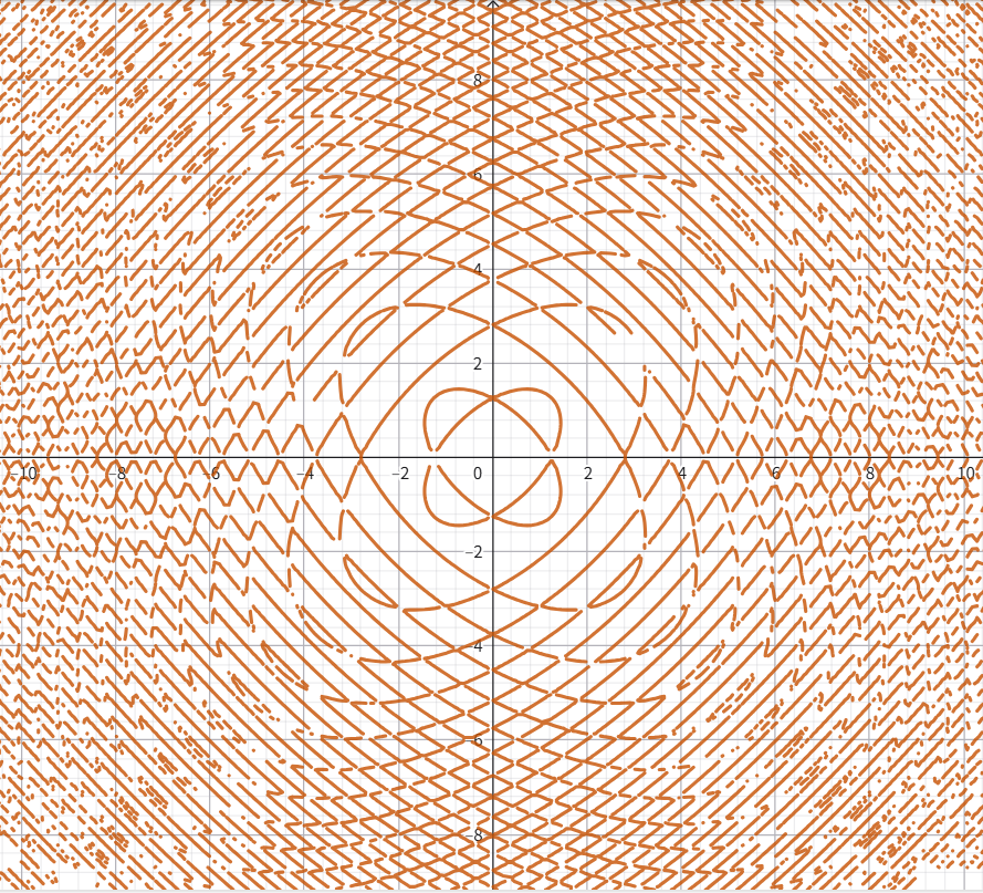 有一个非常冷门的软件是 GrafEq,其绘制算法基于区间算数,绘制精度非常高,可以说秒杀以上所有绘图软件,绘制效果如下: