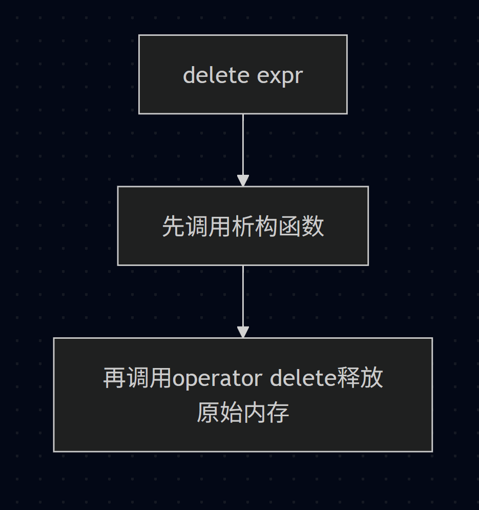 operator delete释放原始内存。 -