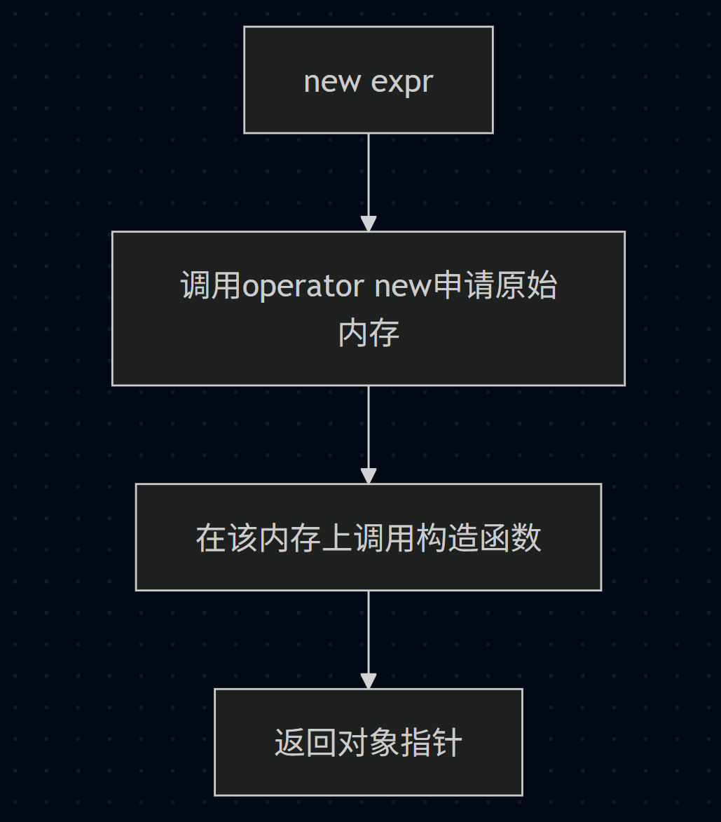 operator new拿到原始内存;②在这块内存上执行构造函数;③返回指针。 -