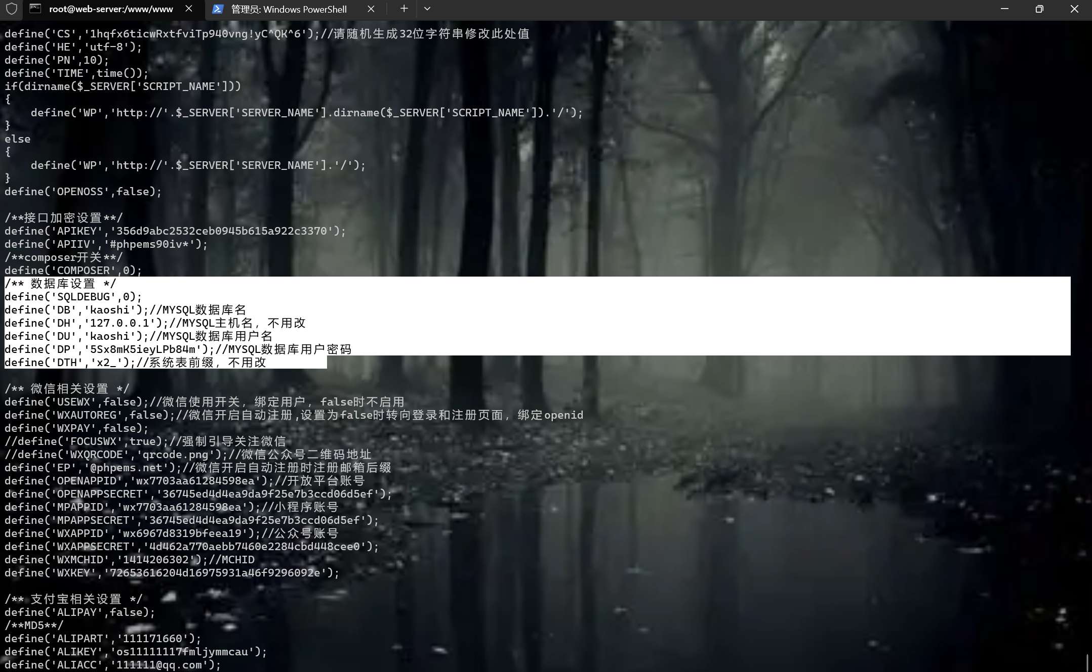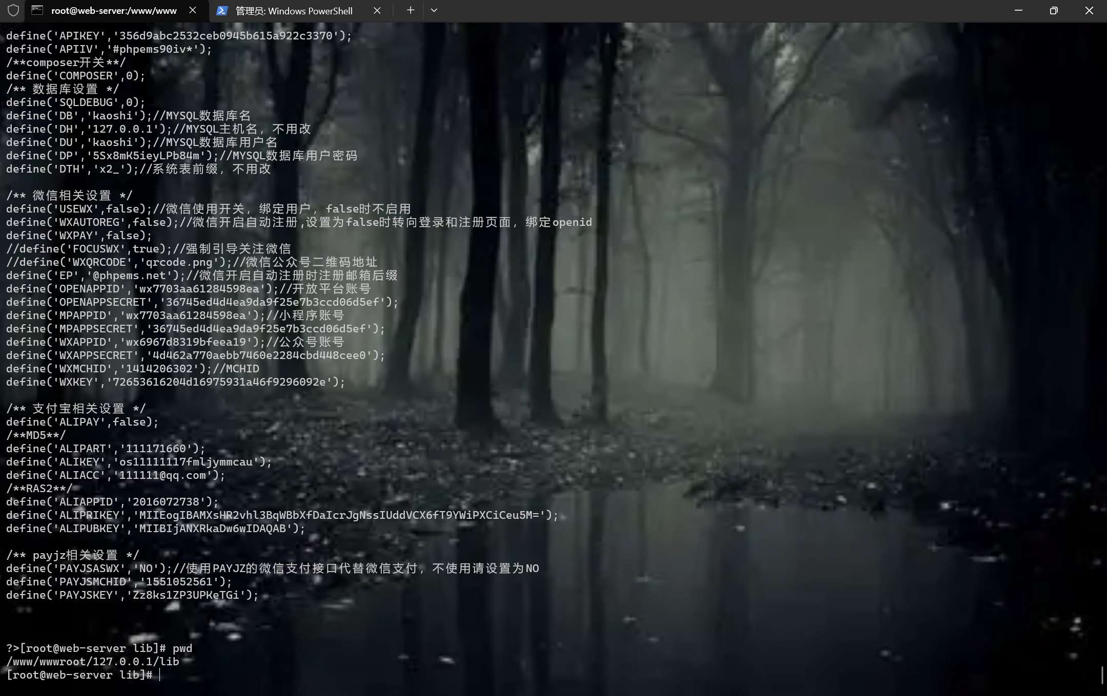 在www/wwwroot/127.0.0.1/lib的config.inc.php可以看到mysql的账号和密码