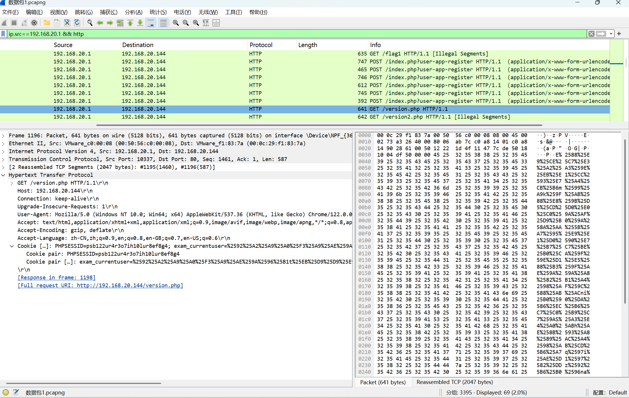 意思就是读取了shell.php的内容,写入到了version2.php中,然后冰鞋木马连接的时候第一次是GET请求,往后是POST请求了,往后分析version2.php中的流量,然后解密