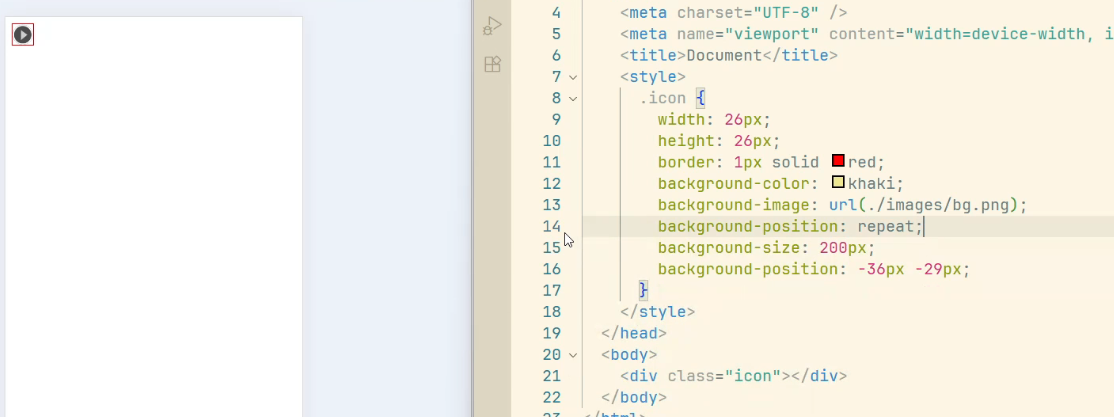 所以在处理精灵图时,我们需要通过background-size来将背景图片大小缩小一半