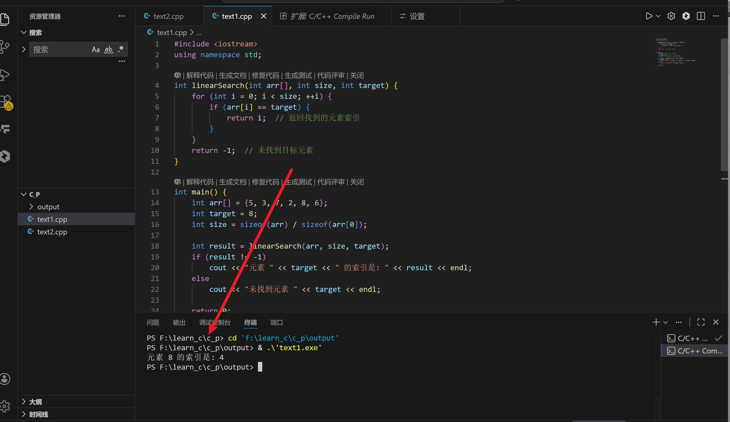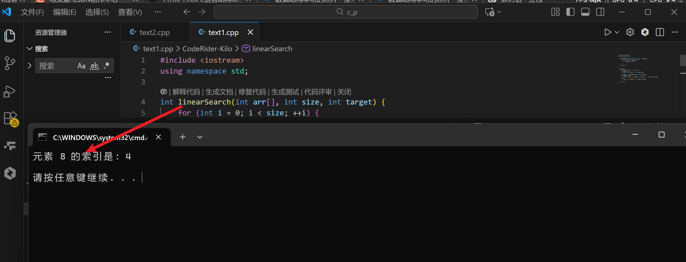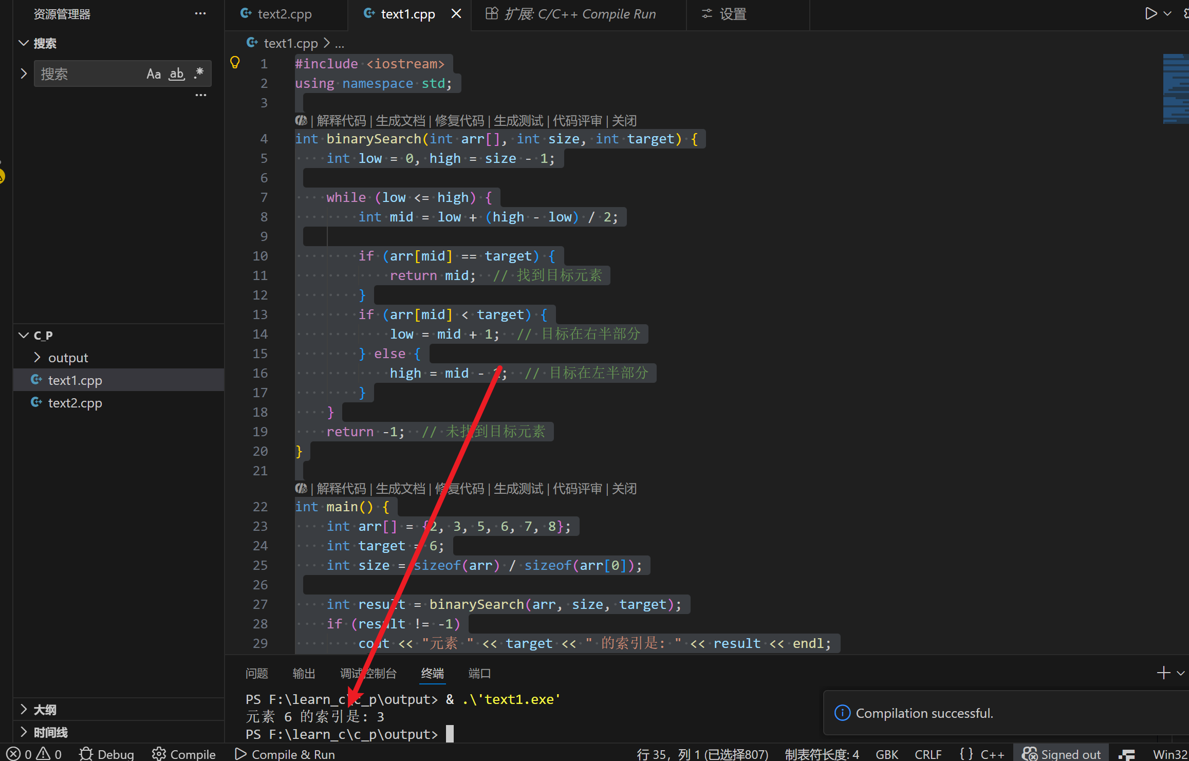cout << "元素 " << target << " 的索引是: " << result << endl;