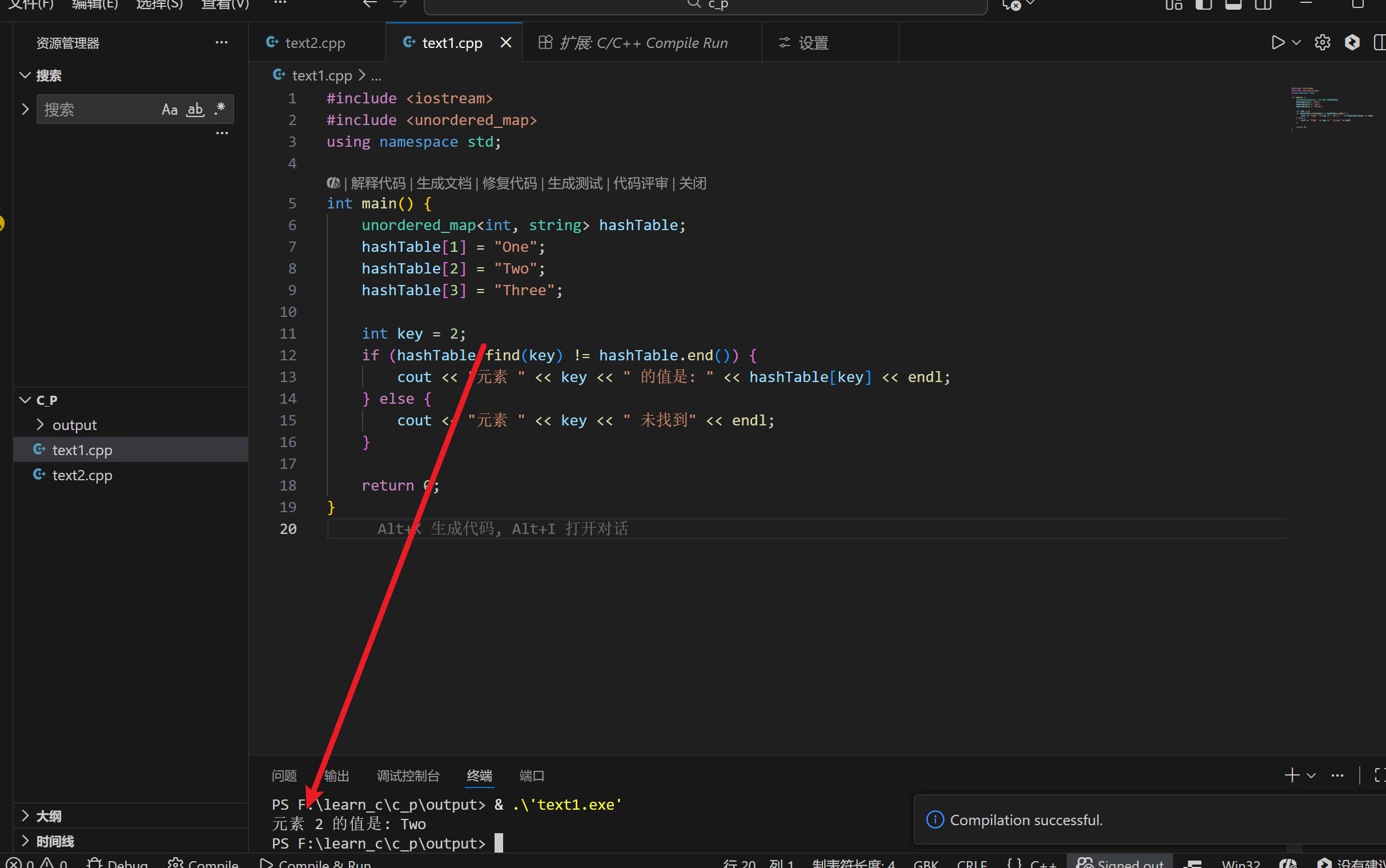cout << "元素 " << key << " 的值是: " << hashTable[key] << endl;