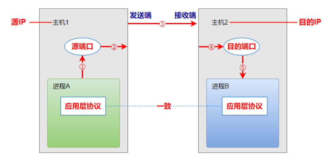 - 目的端口号 : 标识目的主机中该次接收数据的进程