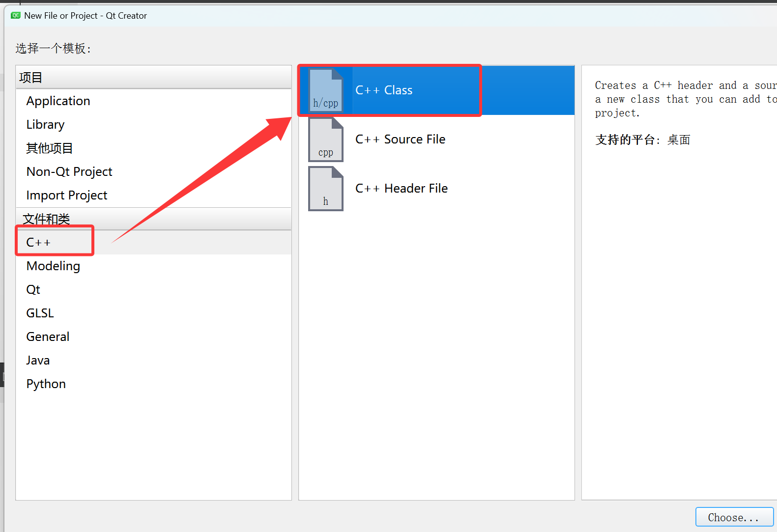 - 为了演示对象树自动销毁析构的过程,我们自定义一个类(MyLabel)----新建项目,选择C++ ----> C++Class