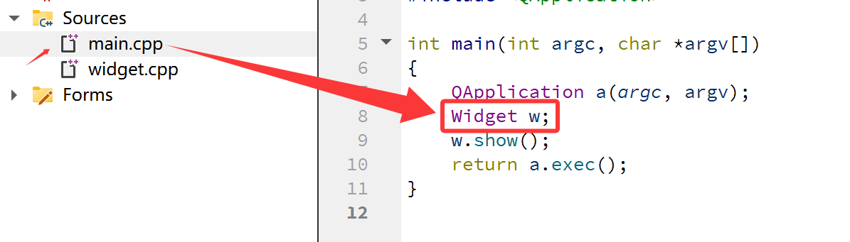 - 使用纯代码方式构建界面时,通常把构造界面的代码放在widget.cpp文件的构造函数中来实现