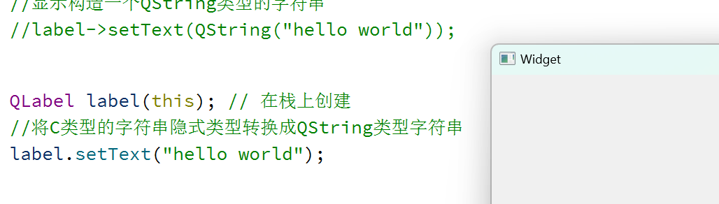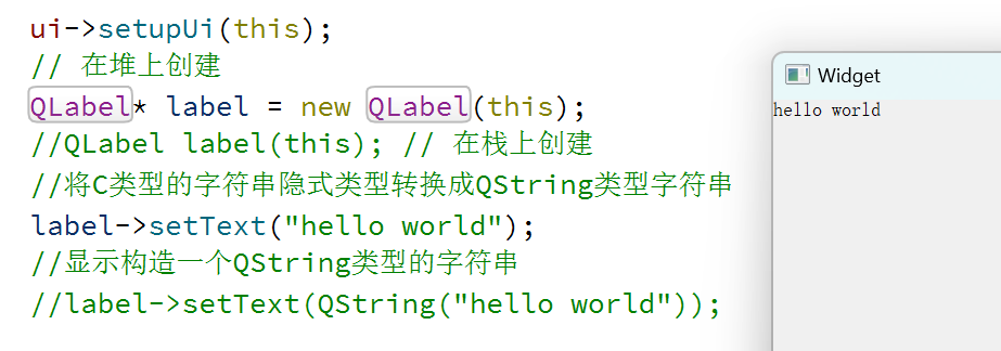 - 同时在new的方式的时候,传入this,给当前label对象指定一个"父对象",在这里的this就是main函数里面的widget对象