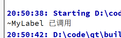 - 在这里注意,我们不能使用C++ 的cout来打印:~MyLabel 已调用这个语句。从下面可以看出,在将窗口关闭之后,程序输出了相关语句,析构函数在窗口关闭之后,自动调用了析构函数,但是使用cout打印中文出现了乱码问题