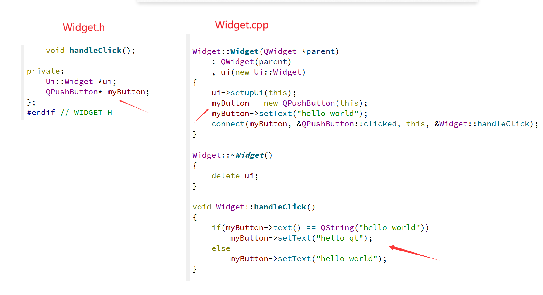 connect(myButton, &QPushButton::clicked, this, &Widget::handleClick);