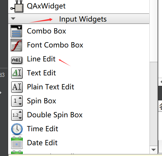 输入框又叫编辑框:我们使用编辑框来实现hello world,编辑框分为单行编辑框(QLineEdit)和多行编辑框(QTextEdit),由于hello world字符串较短,因此我们使用单行编辑框来实现