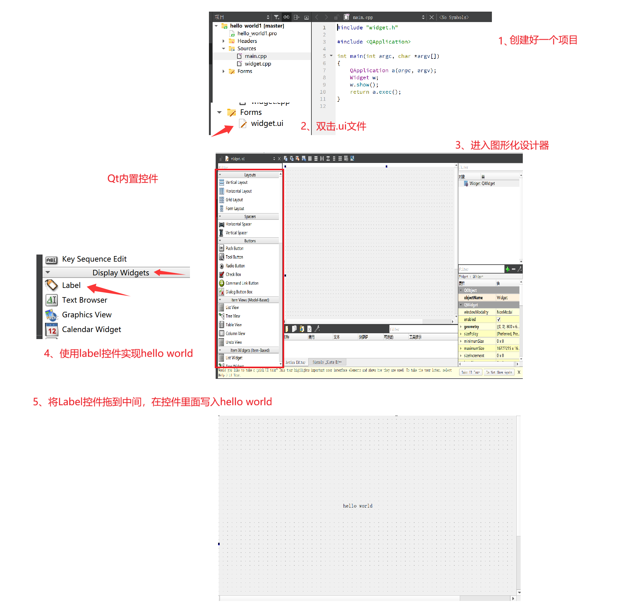 - [1、通过图形化方式创建hello world(Label)](#1、通过图形化方式创建hello world(Label))
