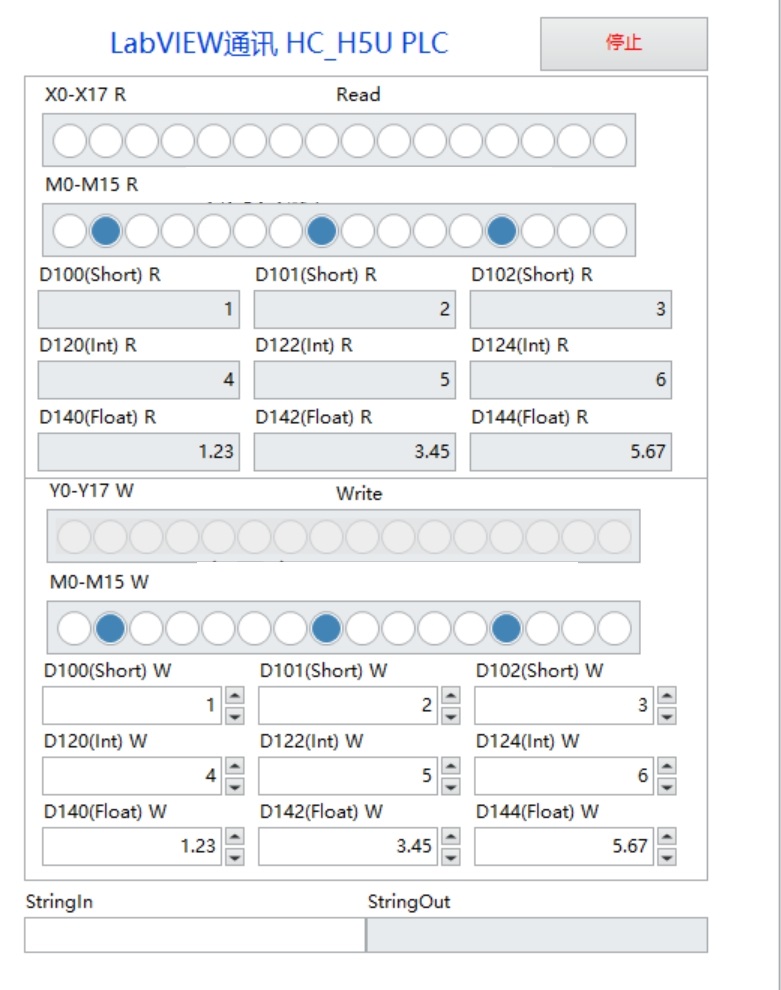 LabVIEW与汇川H5U PLC通信 官方协议,报文读取,安全稳定。 通讯配置,辅助测试。 无程序网络通讯实现。 常用功能一网打尽。 1.命令帧读写。 2.支持 I16 I32 Float 批量读写。 3.支持字符串读写。 4.支持XYMBool批量读写。 5.支持YM单点读写。 程序源码,命令帧文本编写,不调用dll,不安装插件,完胜OPC 等。 创作不易,非诚勿扰。 谢谢大家。