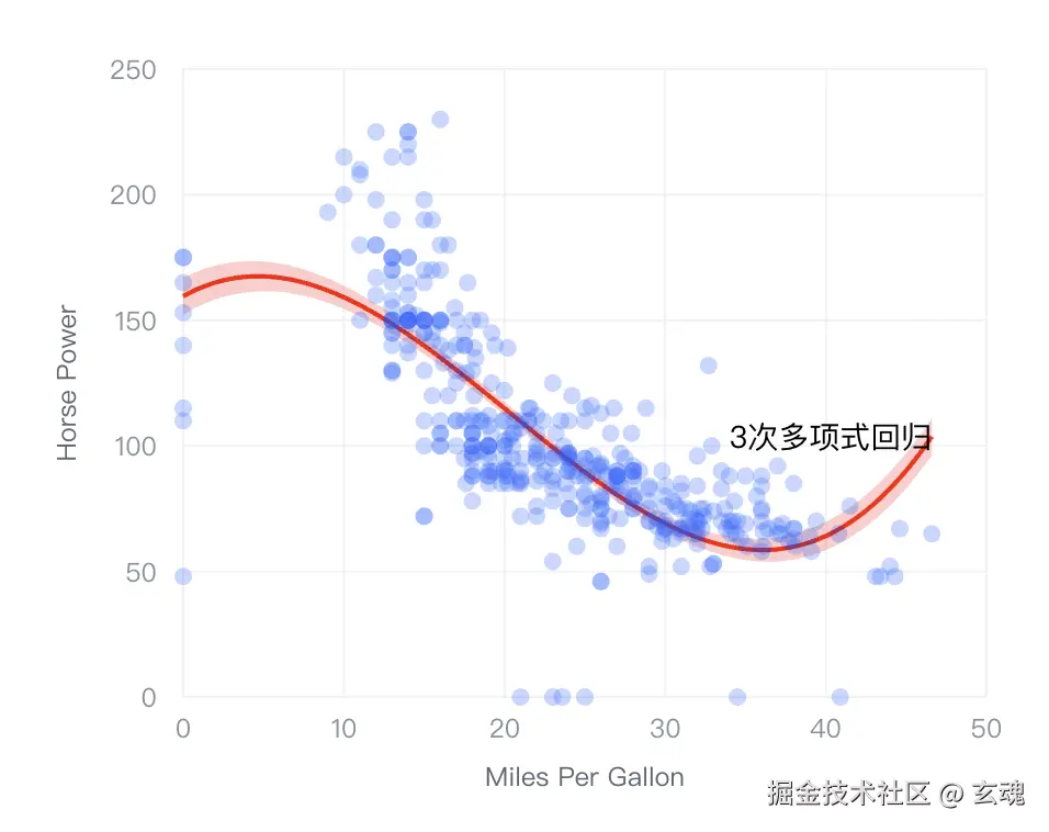 degree(或polynomialDegree): 当type为'polynomial'时,用于指定多项式的阶数,默认为 2。阶数越高,曲线越能拟合数据的波动,但有过拟合的风险。 -