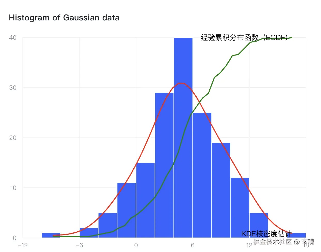 直方图:结合 KDE 或 ECDF,深入理解数据分布特征。