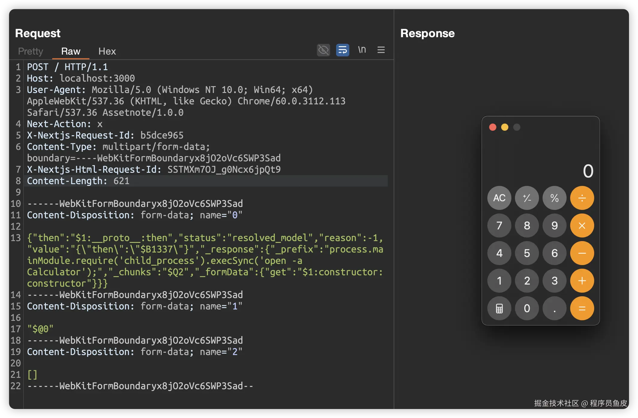 你看漏洞是前两天刚刚披露的,我这就中招了。我们团队的小伙伴自己的服务器也中招了,他通过一个 开源项目 成功复现了攻击,只需要一个请求就能打开服务器上的计算器程序、给服务器写入任何文件。
