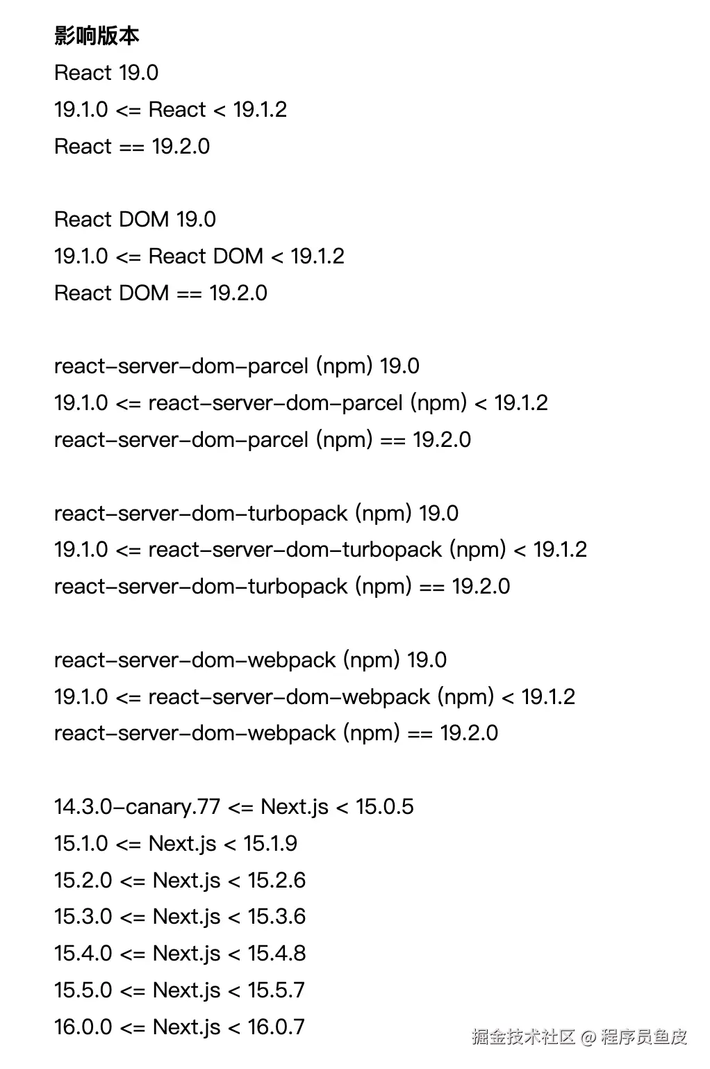 这次漏洞的影响范围很大,包括使用了 React 服务器组件的应用、使用了不安全版本的 Next.js 应用等等。注意,不仅仅是你自己开发的应用,如果你服务器上安装了其他符合这些特征的应用,一样会中招!攻击者是可以通过程序批量扫描这些应用的,发现一个攻击一个。