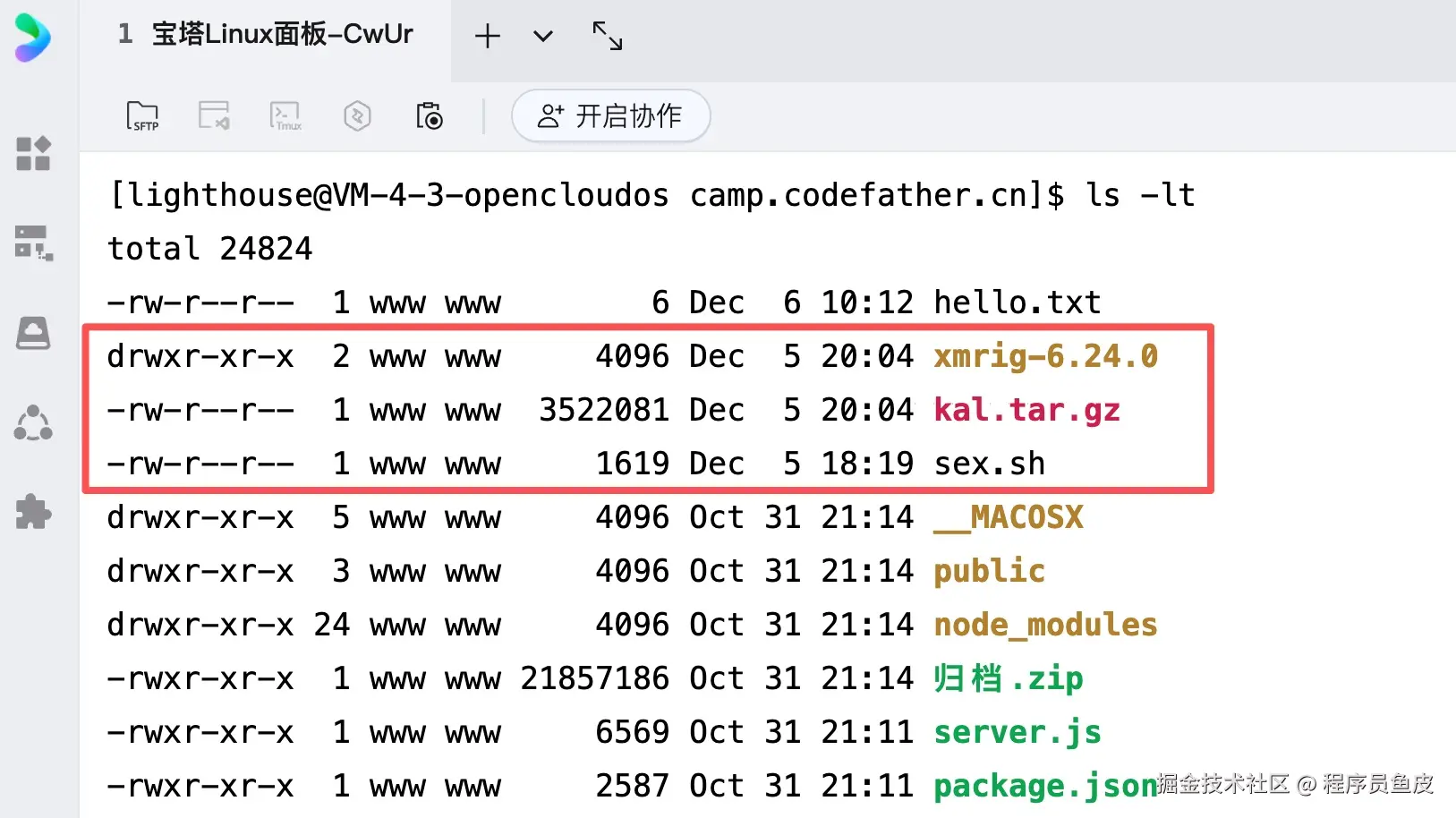然后是第二天早上 6 点多,攻击者不讲武德,给我的服务器植入了第二个恶意程序。