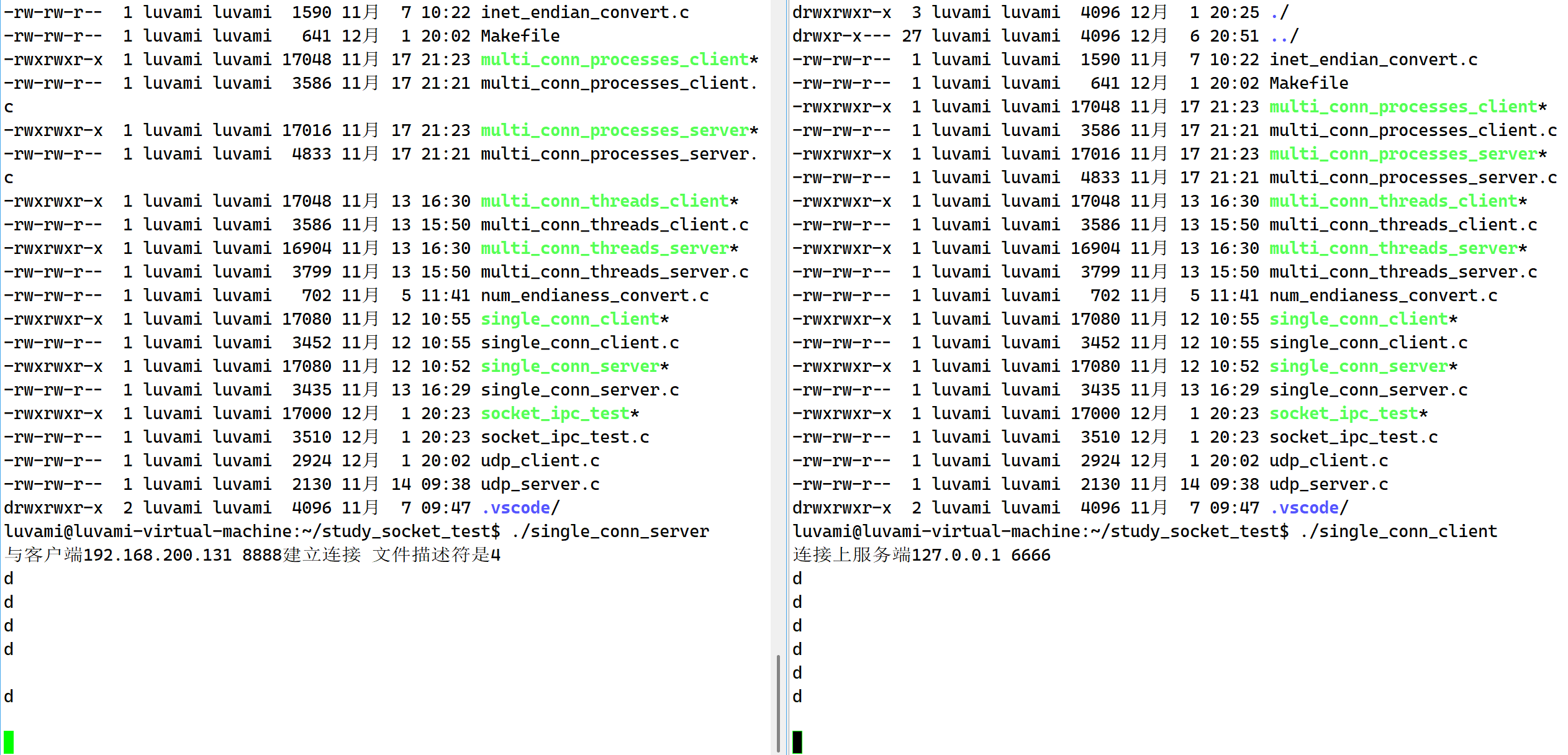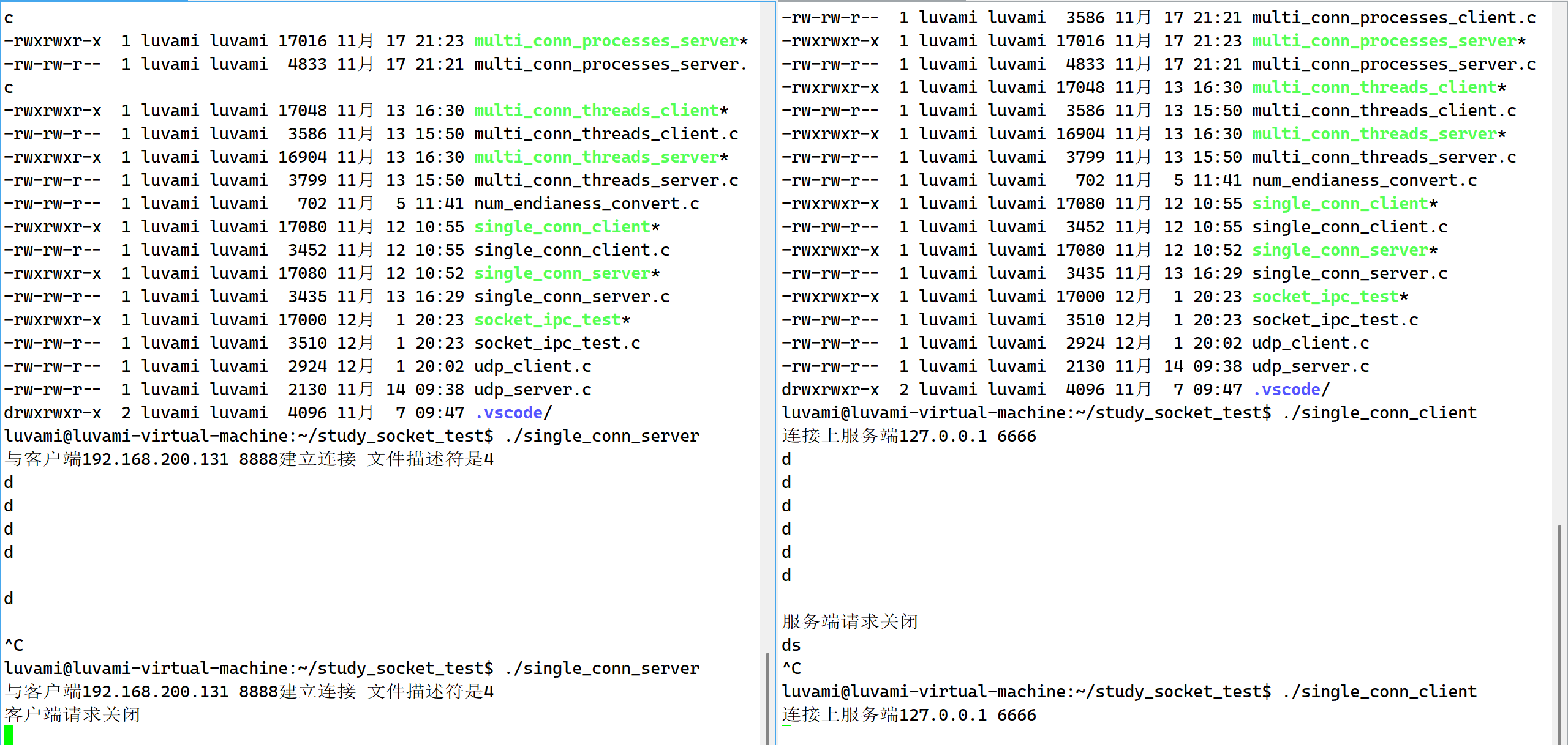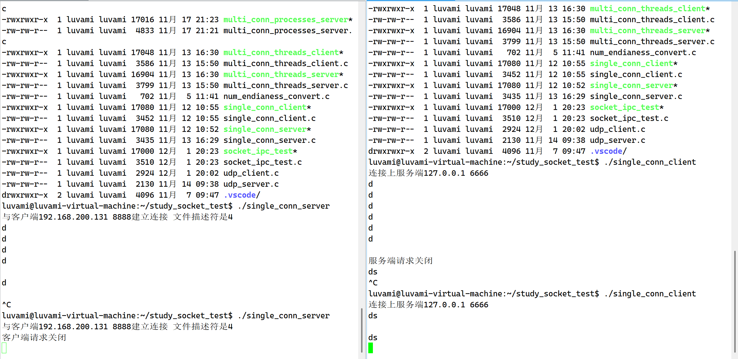 可以看到多线程服务端与多进程服务端的代码实现上,不同在于其 main 函数下实现逻辑不同,这里多线程采用每一 socket 对应一个 pthread 进行读写操作。其中的读写线程函数逻辑大差不差。