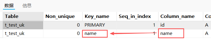 | Non_unique | 索引是否为 "非唯一索引": - 0 = 唯一索引(截图中的是主键,主键是唯一的,所以值为 0) - 1 = 非唯一索引 |