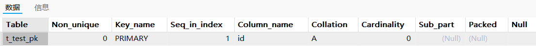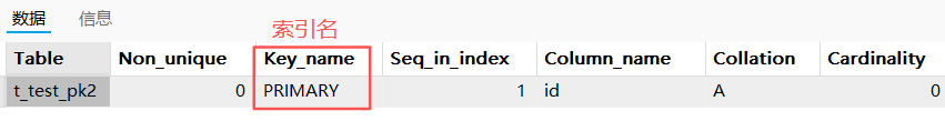 | Table | 索引所属的表名 ,这里对应表 t_test_pk |